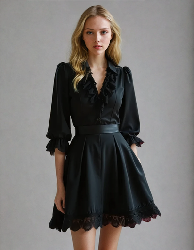 Feofil Burlesque Skirt in Black Lace