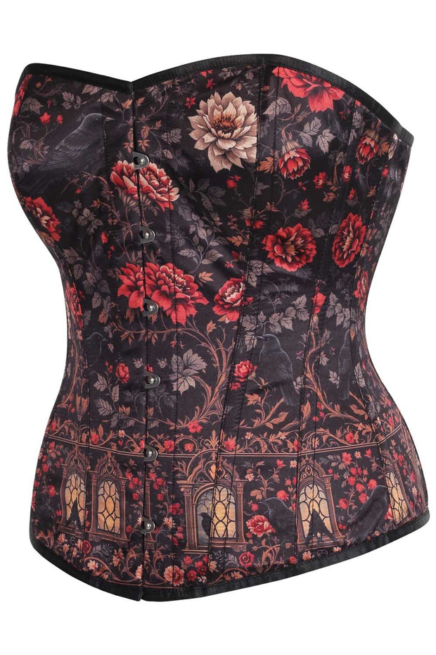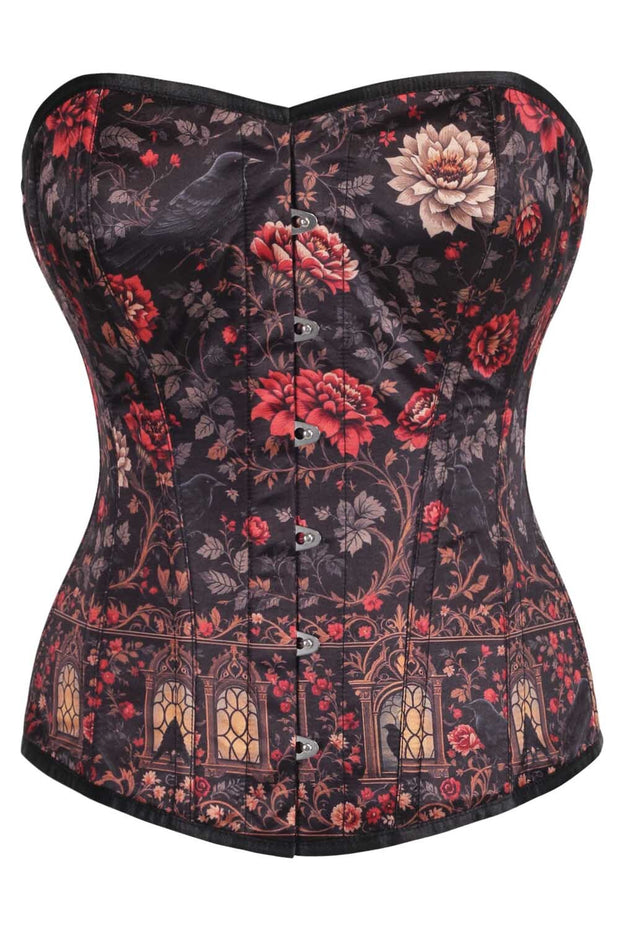 Experience a unique and elegant style with our Berdie Floral Overbust Corset. Featuring a stunning Ravenveil Tapestry digital print, and crafted with luxurious duchess satin and a comfortable cotton lining. The mental bust opening provides a secure and flattering fit. Elevate your wardrobe and embrace the beauty of this corset today.