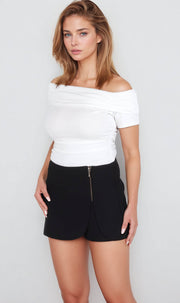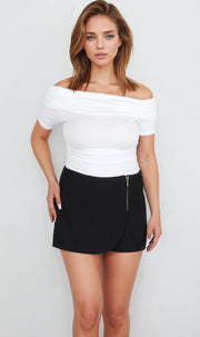 The Bria Knitted Skort is expertly crafted using a durable and comfortable poly knit fabric. Its sleek black design is perfect for any occasion, making it a versatile addition to your wardrobe. Stay stylish and comfortable with the Bria Knitted Skort.